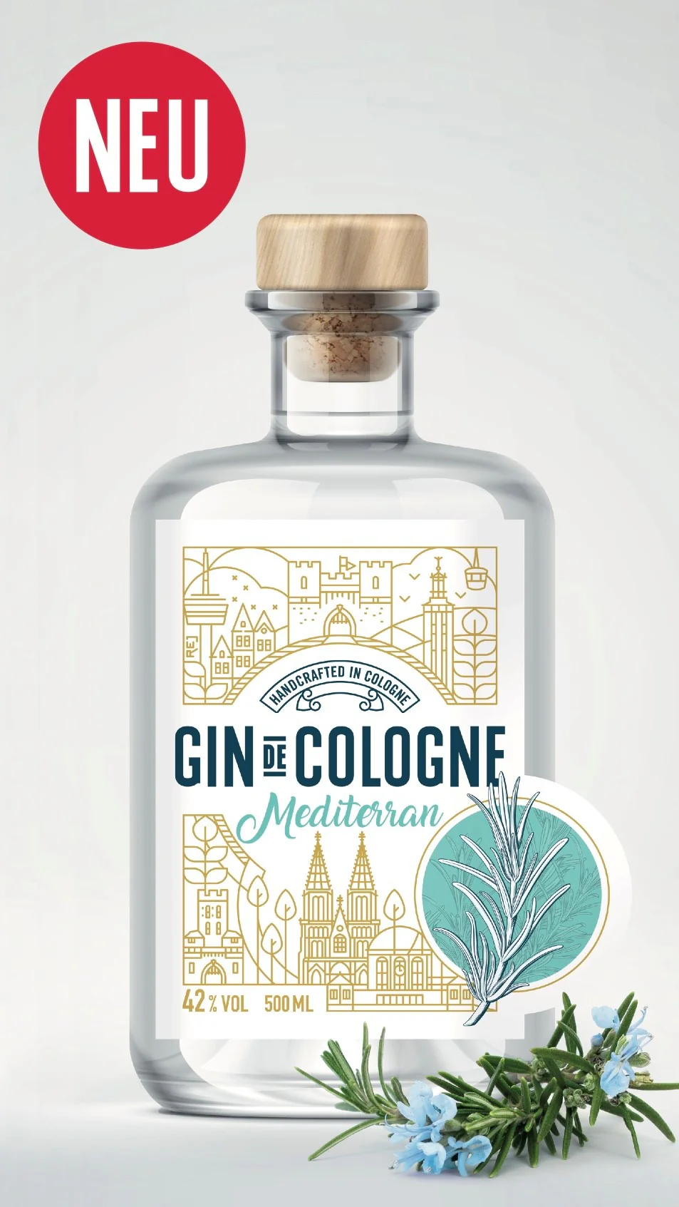 Der Gin de Cologne Mediterran wird in liebevoller Handarbeit in Köln gebrannt. Sorgfältig ausgewählte Zutaten und viel Herzblut machen ihn zu einem besonderen Erlebnis – pur, auf Eis oder als erfrischender Gin Tonic.
