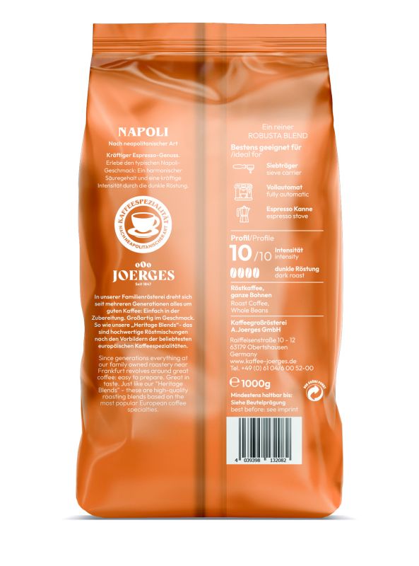 Der Joerges Heritage Espresso verbindet die besten Bohnen aus Asien und Afrika mit traditioneller Röstkunst – ein Espresso mit Charakter, Tiefe und perfekter Crema.